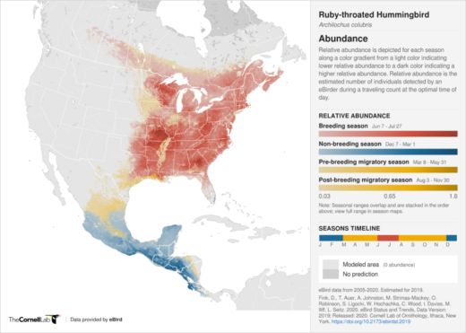 They also say their goal is to gather this information and put it to meaningful use. Each individual sighting even makes maps like this migration pattern of Ruby-throated Hummingbirds possible. Yes, each of those tiny specs of color was once an eBird submission!